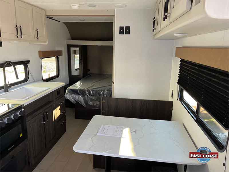 Step into the Zinger 190RB travel trailer, where smart design meets everyday comfort—perfect for campers who want more from every getaway. Thoughtfully laid out to feel open and inviting, this model features a cozy booth dinette for meals, games, or planning your next adventure, paired with a fully equipped kitchen complete with modern appliances and ample storage to make cooking on the road effortless.