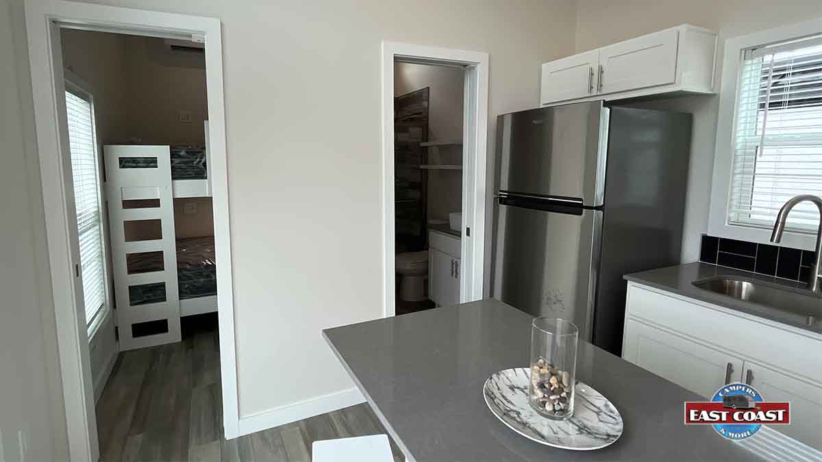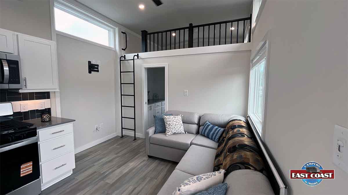 Now In Stock! The Great Outdoor Cottages Lifestyle 210 with Loft #245 is the perfect blend of comfort and style. This spacious model features two bedrooms, including a bunk room ideal for kids or guests. The open floorplan concept creates a bright and inviting living area, while the loft adds extra space for sleeping or storage. Designed with modern finishes and family-friendly functionality, this cottage is ready to become your home away from home!