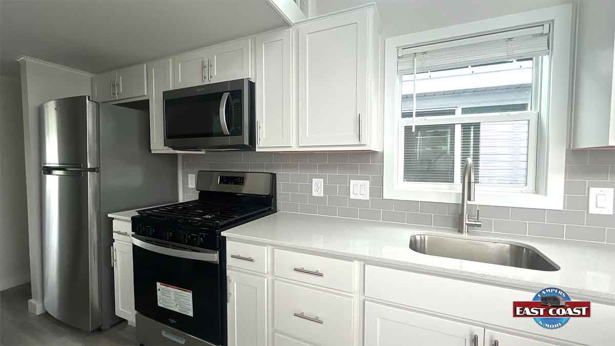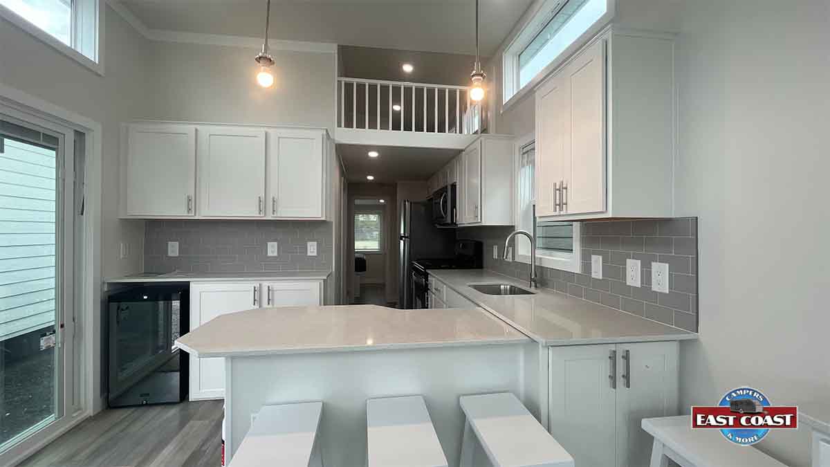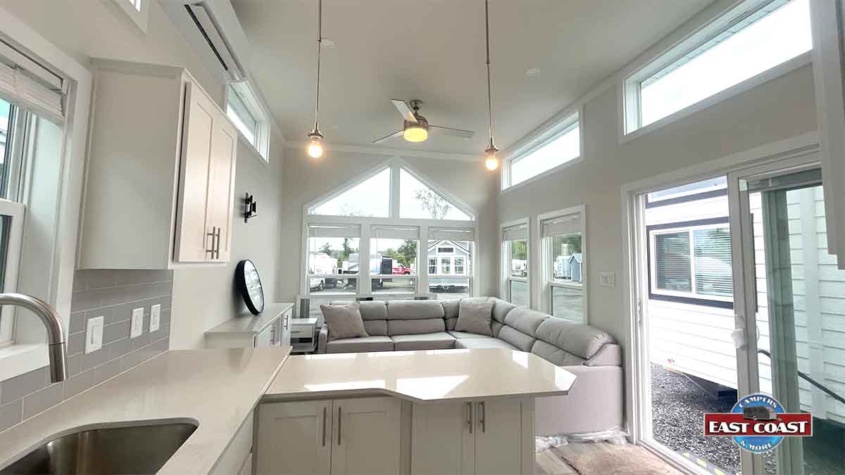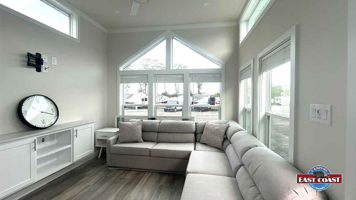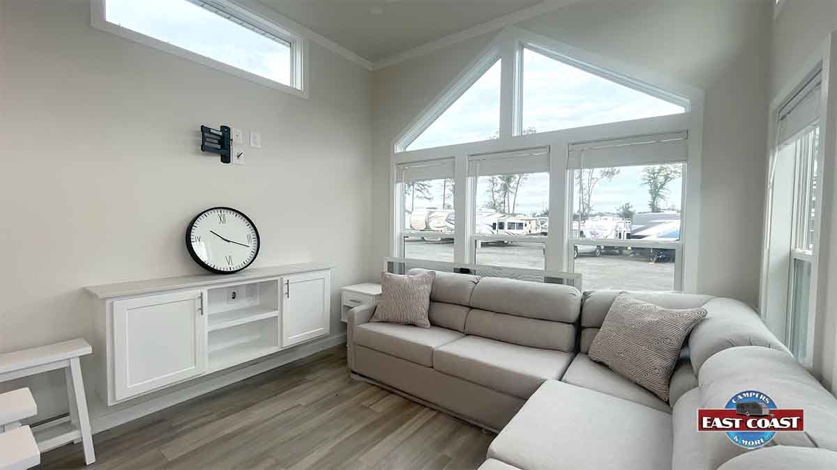 Designed for those who love a modern coastal vibe, the Pro Bayview 300 L2-K2 brings together clean lines, natural light, and smart use of space. This park model RV is all about effortless living with a touch of elegance.