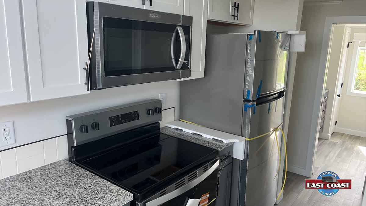 Inside, you’ll find a bright open-concept living space that’s perfect for relaxing or hosting family and friends. The spacious kitchen is equipped with full-size appliances, generous counter space, and plenty of storage to make meal prep simple and convenient. A private bedroom offers a peaceful retreat with built-in storage, while the loft provides versatile extra space for guests, kids, or additional organization.