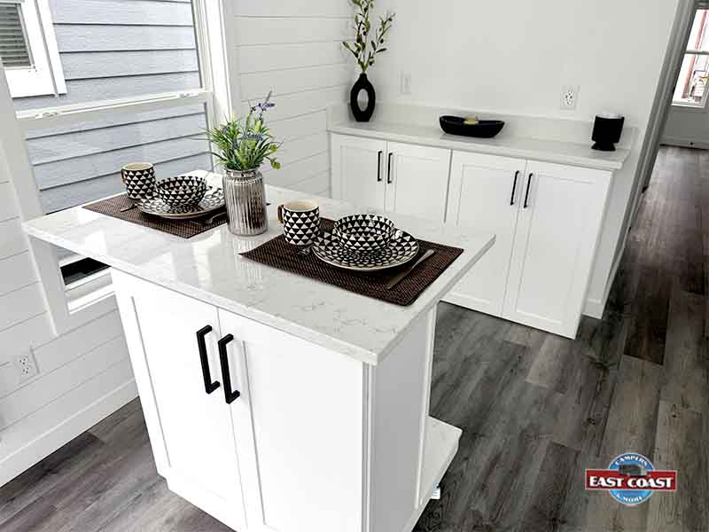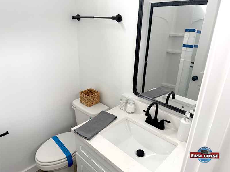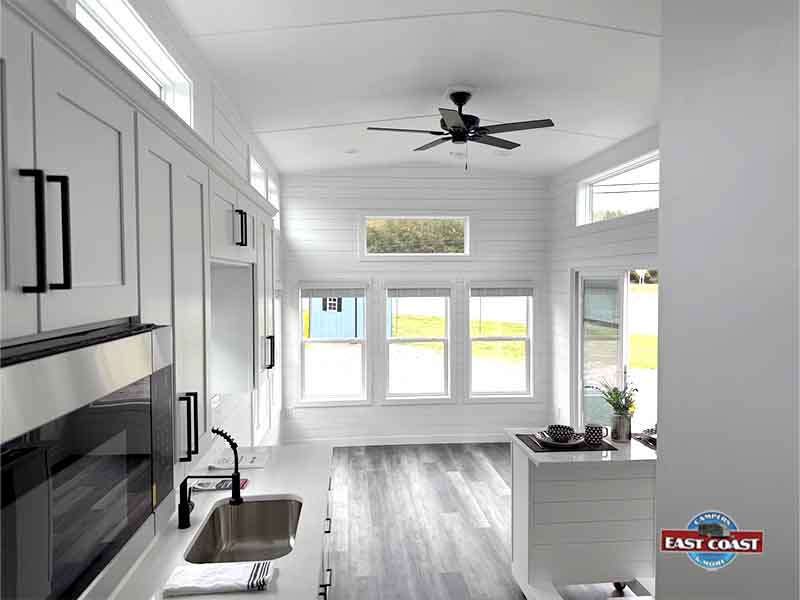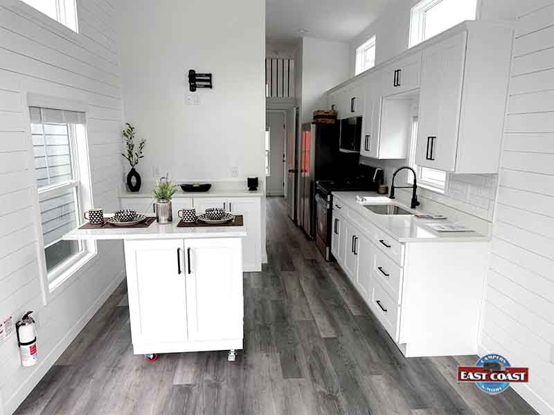 Step inside and be greeted by vaulted ceilings, soaring windows, and a flowing open floor plan designed to amplify every square foot. The heart of the home boasts full-size stainless appliances, quartz countertops, soft-close cabinetry, and USB charging ports throughout. A modern bathroom with glass shower walls and porcelain accents enhances the resort-style feel. Above, a loft offers flexible space for guests or storage. Built with quality in mind—2×6 joists, spray-foam underbelly insulation, and premium materials—this Colgate model is engineered to stand up to seasonal use in style.