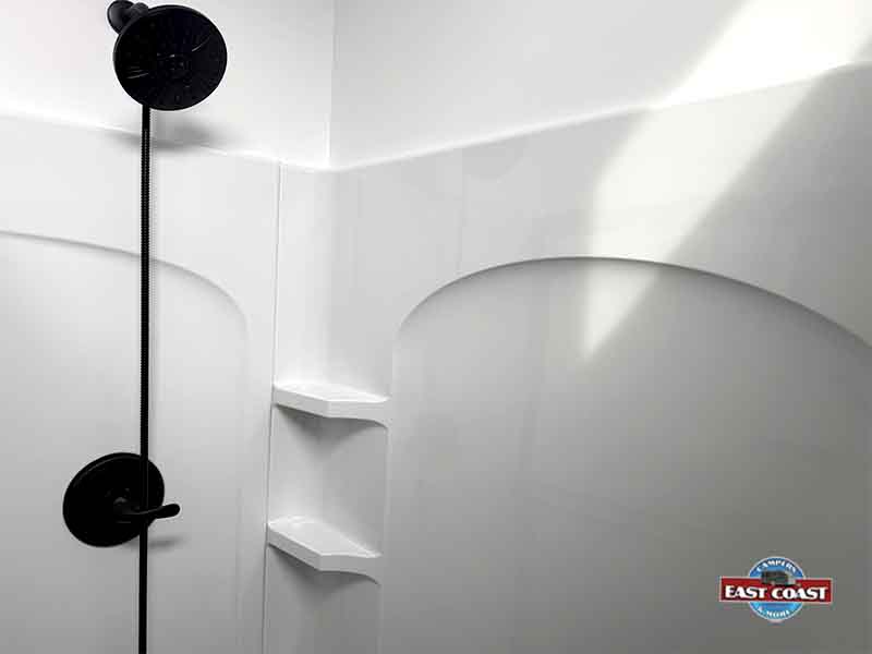- Bathroom – glass shower, porcelain wall panels, and quartz countertops
