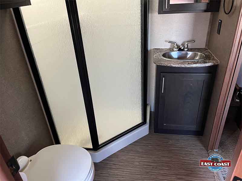 1.5 Bathrooms — a rare find in a travel trailer at this price. Plus access from the outside!