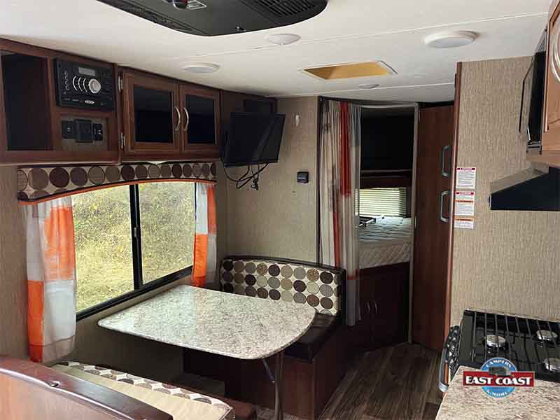 Discover big adventure in a compact package with this 2022 Dutchmen Coleman 17B travel trailer — ideal for families, weekend get-aways, or those just starting out in RV life. With room to sleep up to 5, including a queen bed up front, bunk beds in the rear, and a dinette that converts, this trailer delivers flexibility without sacrificing comfort. Clean and modern interior touches—vinyl flooring, high-rise faucet, and a solid entry step—make it feel like home, while amenities like a private bath, a 2-burner cooktop, microwave, and a power awning let you enjoy all the outdoor fun with indoor convenience. Lightweight and easy to tow (just under 3,100 lbs dry weight), this Coleman 17B is an excellent blend of value, functionality, and adventure ready features. Pack up, hook up, and hit the road—your next escape awaits.