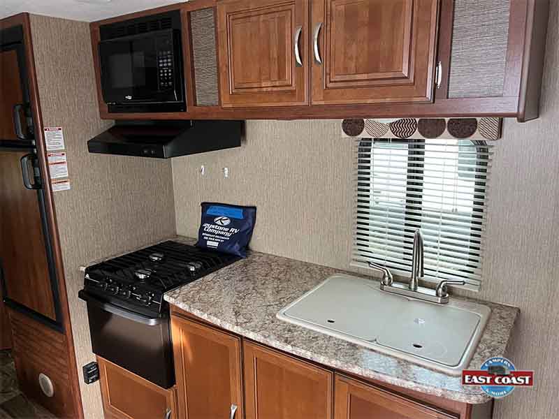 The 2017 Forest River Wildwood 241QBXL is a lightweight travel trailer built for easy towing and comfortable adventure. Inside, you’ll find a welcoming front bedroom with a queen bed, along with a roomy rear bathroom that offers extra privacy and storage space. The open living area includes a dinette and sofa that can convert for additional sleeping, making it great for couples with occasional guests. Thoughtful kitchen features, ample cabinetry, and modern appliances make campsite cooking simple and enjoyable. Outside, a power awning and pass-through storage add convenience wherever you travel. If you’re looking for a trailer that blends manageable size with surprising interior space, the Wildwood 241QBXL is ready to hit the road.
